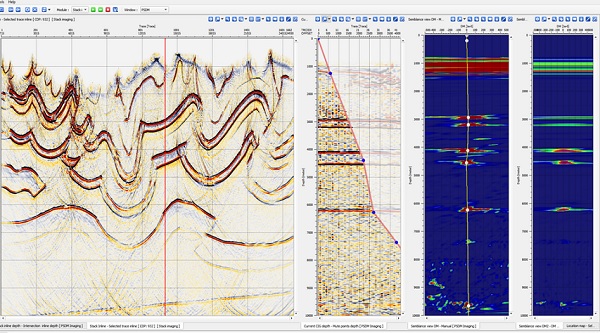 Velocity seismic data analysis is a part of Stack Imaging module, a highly interactive workflow designed for both 2D and 3D processing. It provides the user with all the necessary tools to create the most accurate stacking velocities and data imaging.