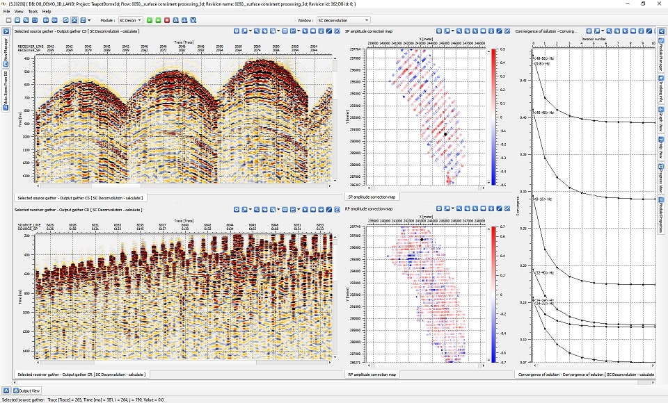 Geomage's g-Platform implementation of surface consistent modules have a multi-frequency mode which allows accurate amplitude estimation, equalization and enhancement within the frequency spectrum range.