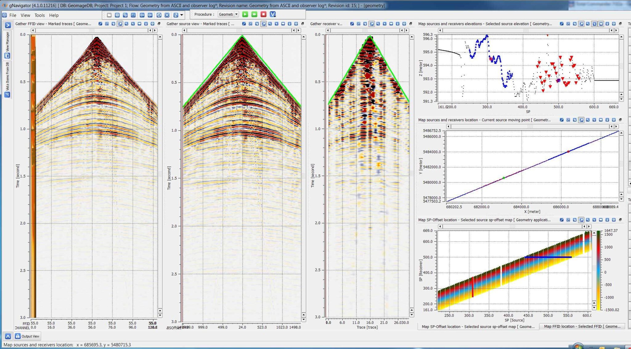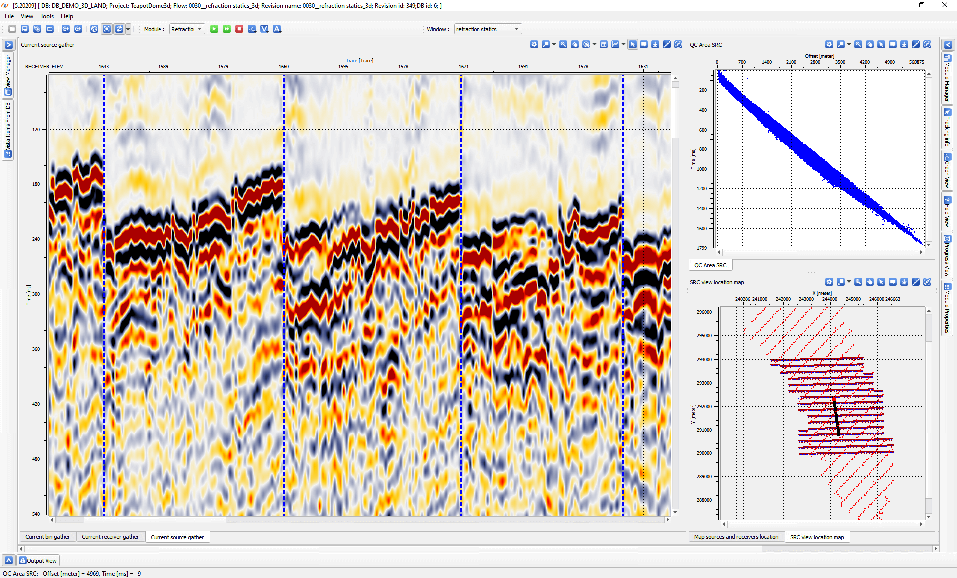 g-Platform comes with interactive manual and robust semi-automatic first-break picking followed by gradient model refraction or TOMO statics solution. This allows for very fast turnaround on seismic 2D/3D projects of any size. Our solution based on scientific, technological and implementation advantages listed below: