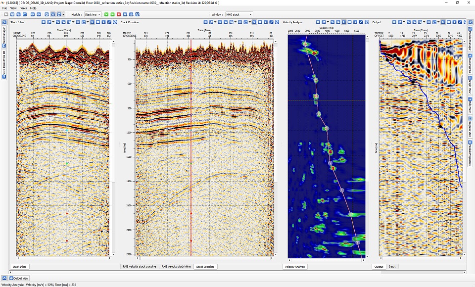 Velocity seismic data analysis is a part of Stack Imaging module, a highly interactive workflow designed for both 2D and 3D processing. It provides the user with all the necessary tools to create the most accurate stacking velocities and data imaging.