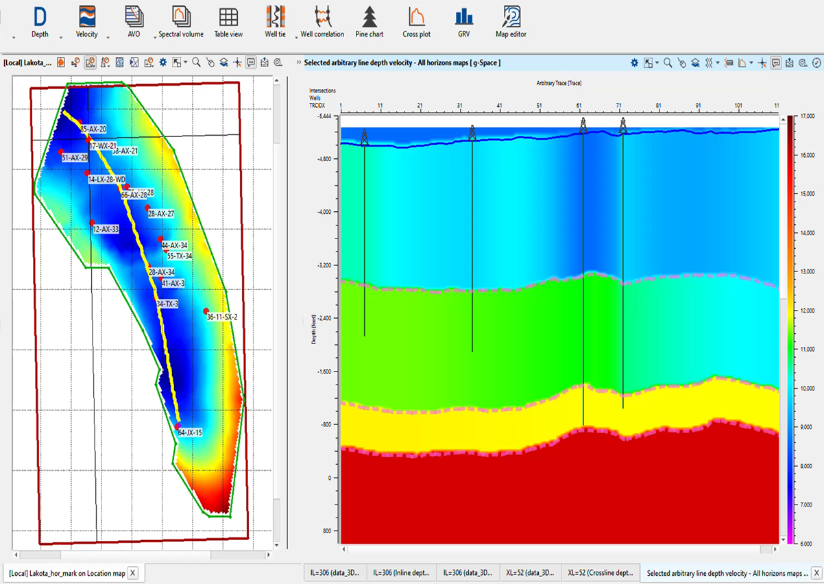 - Simultaneous horizons interpretation on 2D, 3D or arbitrary line view