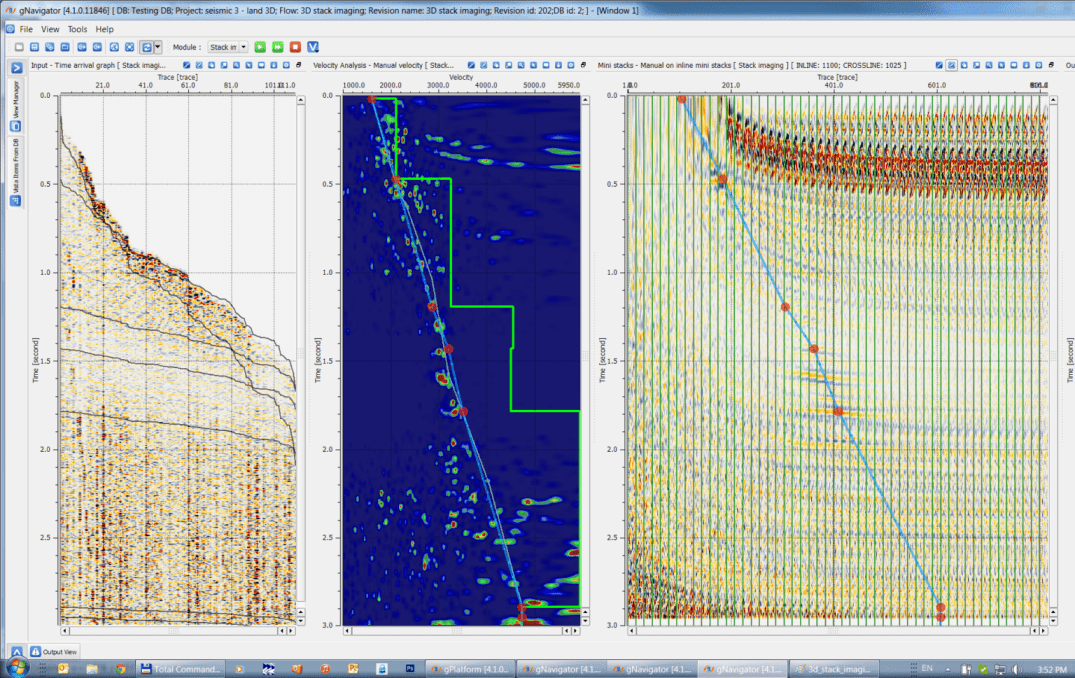 g-Platform's stack imaging module integrates all of the functionality of velocity analysis with a fast data stacking and visualization tool: